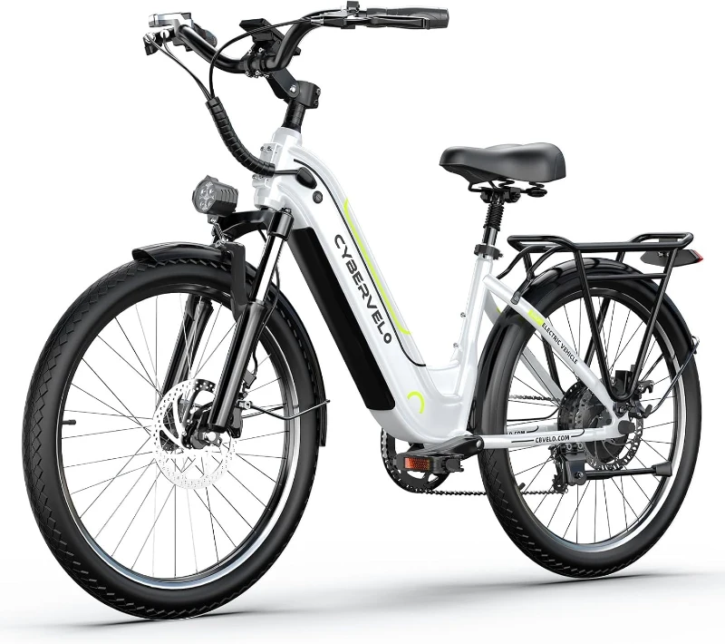 High-performance 1000W peak brushless motor paired with a 7-speed drivetrain delivers strong acceleration, hill-climbing power and a top speed around 25+ MPH while offering greater torque and quieter, lower-maintenance operation compared with 350W models; Long-range removable battery provides extended outings — rated for about 80+ miles per charge depending on mode and conditions — ideal for commuting, beach trips, climbs and touring with friends; Front suspension forks, saddle shock absorption and two puncture-resistant tires combine for superior comfort and stability on rough surfaces; Dual mechanical disc brakes front/rear plus an EABS system ensure reliable, powerful stopping even on steep or rugged terrain; Water-resistant color LCD shows real-time speed, battery level, PAS setting, mileage and more, with 5 ride modes (pure electric, pedal assist, classic bike mode, etc.), 5 PAS levels and an easy cruise-control toggle for day/night visibility; Arrives ~90% pre-assembled with pedals and a seat included, and backed by 24/7 customer support for questions and assistance.