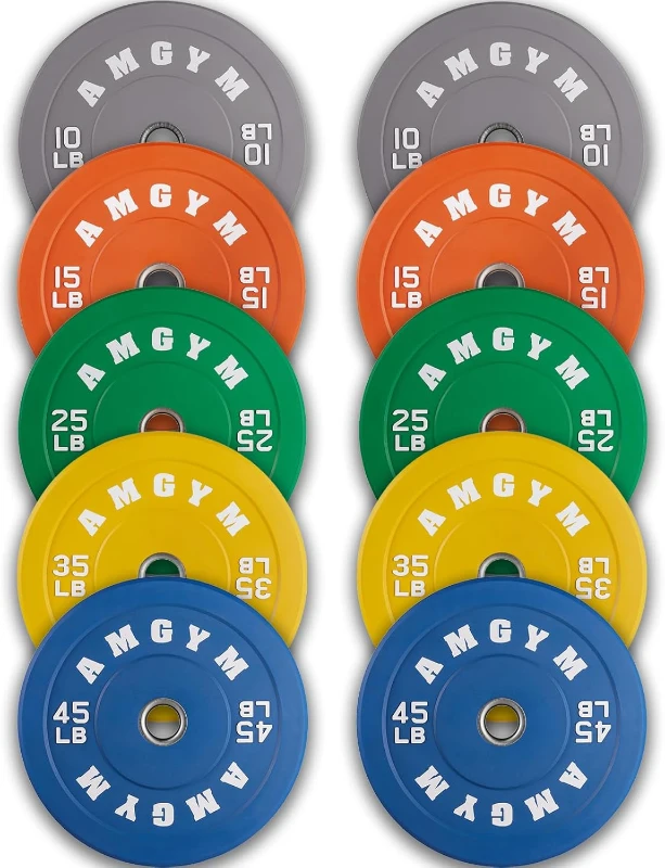2-Inch Olympic Bumper Plates Set (10–500 lbs Options) — Natural Rubber Barbell Weights for Home Gym, Strength Training & Weightlifting, Color-Coded
