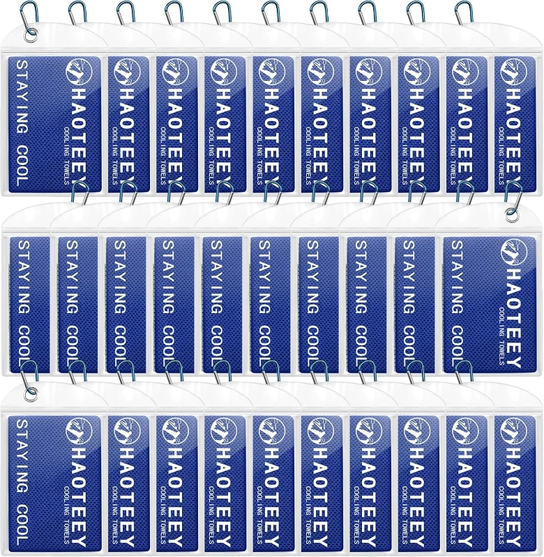 INSTANT COOLING ACTION: These bulk neck towels use evaporative cooling to pull heat away from the skin—simply wet, squeeze out excess water, and shake to activate an immediate cooling sensation that endures during long activities. MULTI-PURPOSE & GENTLE ON SKIN: Made from breathable, hypoallergenic material safe for sensitive skin; use as a neck sling, shoulder cover for UV protection, or a sweat-managing headband—great for athletes, travelers, kids, and older adults. CONVENIENT & PACKABLE: Supplied with a waterproof carrying pouch and clip-on carabiner so towels can be stored wet or dry and easily attached to bags for hikes, beaches, gym visits, or yard work. BUILT TO LAST: Features reinforced stitching along the edges to resist fraying after frequent laundering; each 40in x 12in towel comes in a 30-piece bulk pack for seasonal or team use. PERFECT FOR SUMMER SPORTS: Lowers body temperature to support quicker recovery after strenuous exercise or outdoor labor—ideal for preventing overheating and minimizing sun stress.