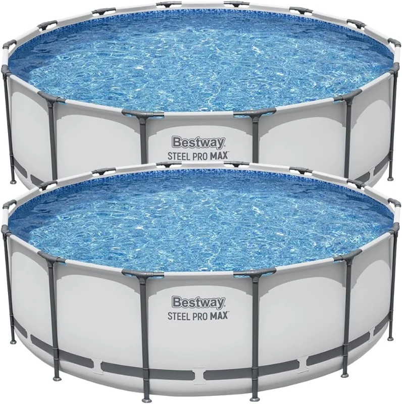 Bestway Steel Pro MAX 2-Pack Above-Ground Round Pool Set — 14 ft x 48 in Metal Frame with 1,000 Filter Pump, Ladder & Cover