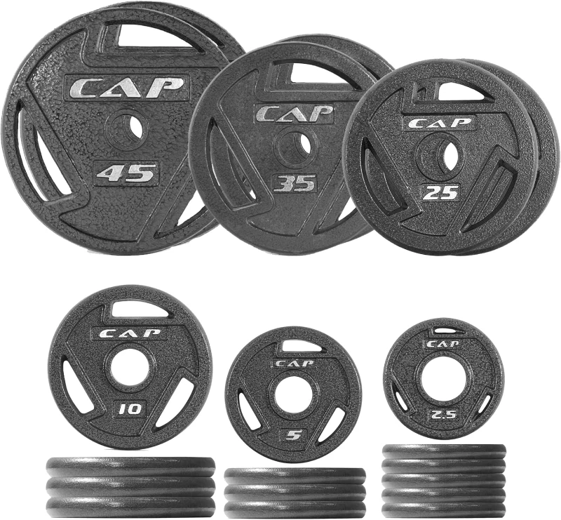 CAP Barbell 2-Inch Olympic Cast Iron Plate Weight Set | 75–285 lb Options, Durable Finished Weights
