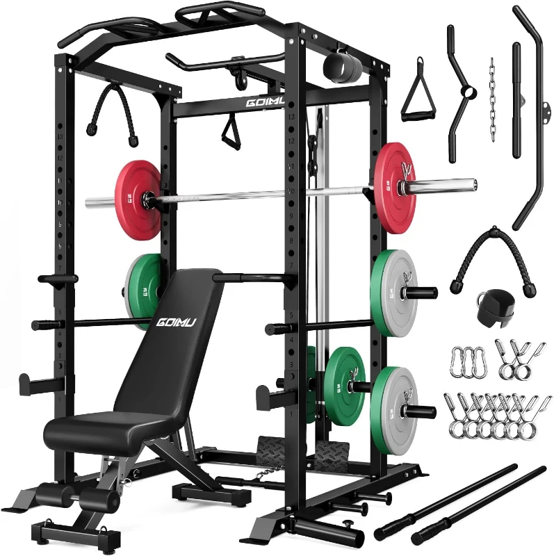 GOIMU C1-V4 Power Cage – 2000 lb Heavy-Duty Squat Rack with Lat Pulldown & Multi-Function Attachments for Home/Garage Gym
