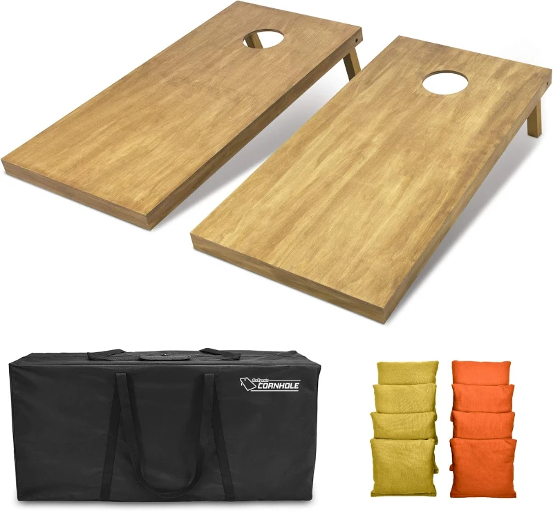 GoSports Regulation-Size Cornhole Set – 4x2 ft Solid Wood Boards with Light Brown Finish, Includes Carry Case & Bean Bags