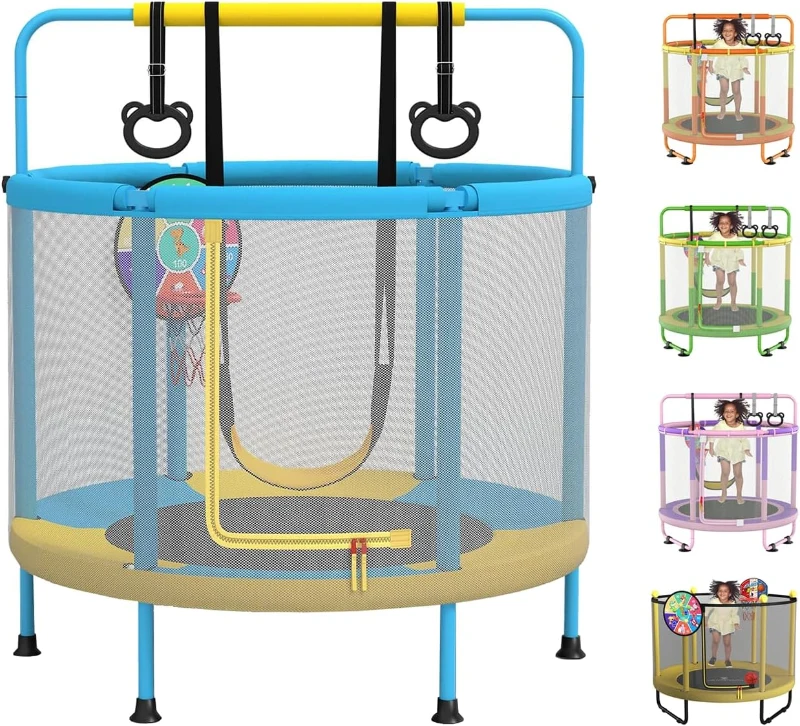 LANGXUN 60-inch Kids Trampoline (5 ft) 6-in-1 Indoor/Outdoor with Swing, Basketball Hoop, Dartboard & Rings — Birthday/Christmas Gift for Boys & Girls
