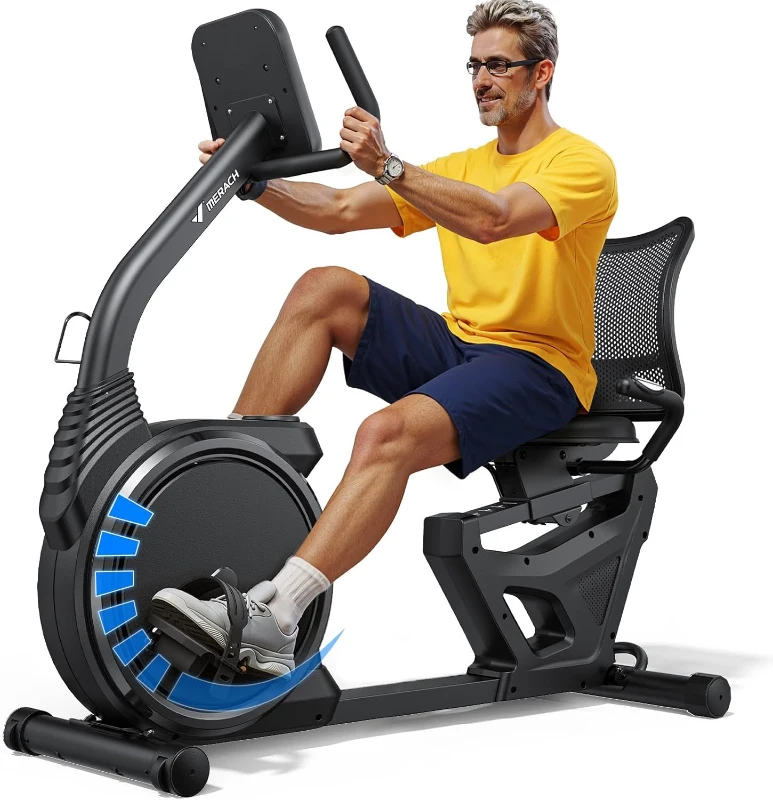 MERACH High-End Magnetic Recumbent Exercise Bike with Smart Bluetooth, App-Controlled Auto-Resistance, LCD & Heart Rate Handles