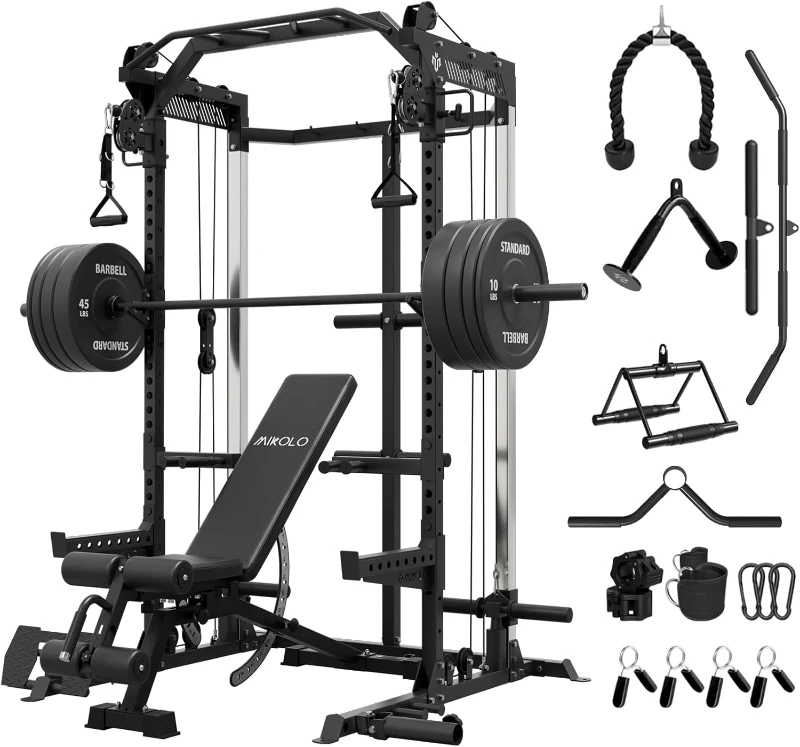 Mikolo HR05 Power Cage 2000 lb Power Rack with Independent Dual 1:1 Pulley System – Multi-Function Home Gym & Cable Crossover Machine