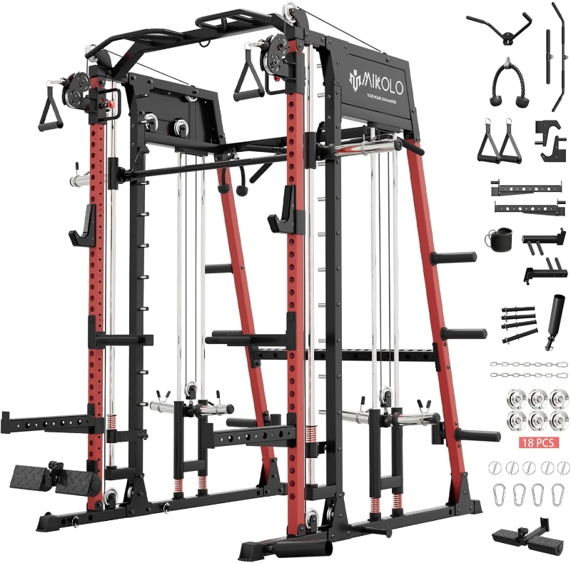 Mikolo M4 2.0 Smith Machine & Power Rack Combo - 2200 lb Capacity with Dual Cable Functional Trainer, Lat Pulldown & Cable Crossover