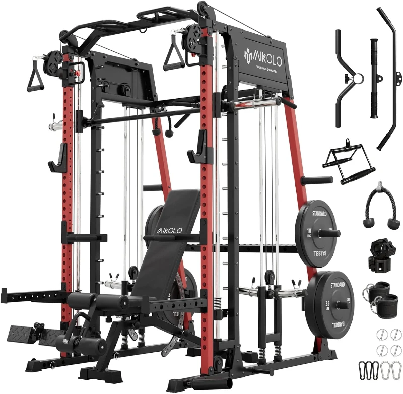 Mikolo M4 2.0 Smith Machine & Squat Rack — 2200 lb Capacity with Lat Pulldown, Dual Cable Crossover and Leg Hold-Down
