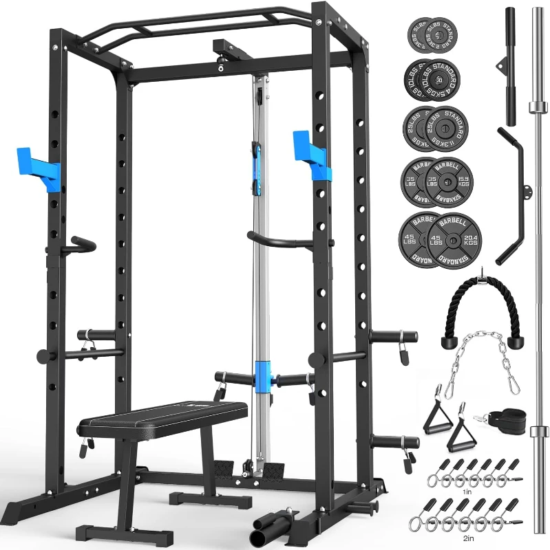 Multi-Functional Power Cage — Heavy-Duty Rack with J-Hooks, Dip Handles, Landmine, and Optional Cable Pulley System for Home Gym