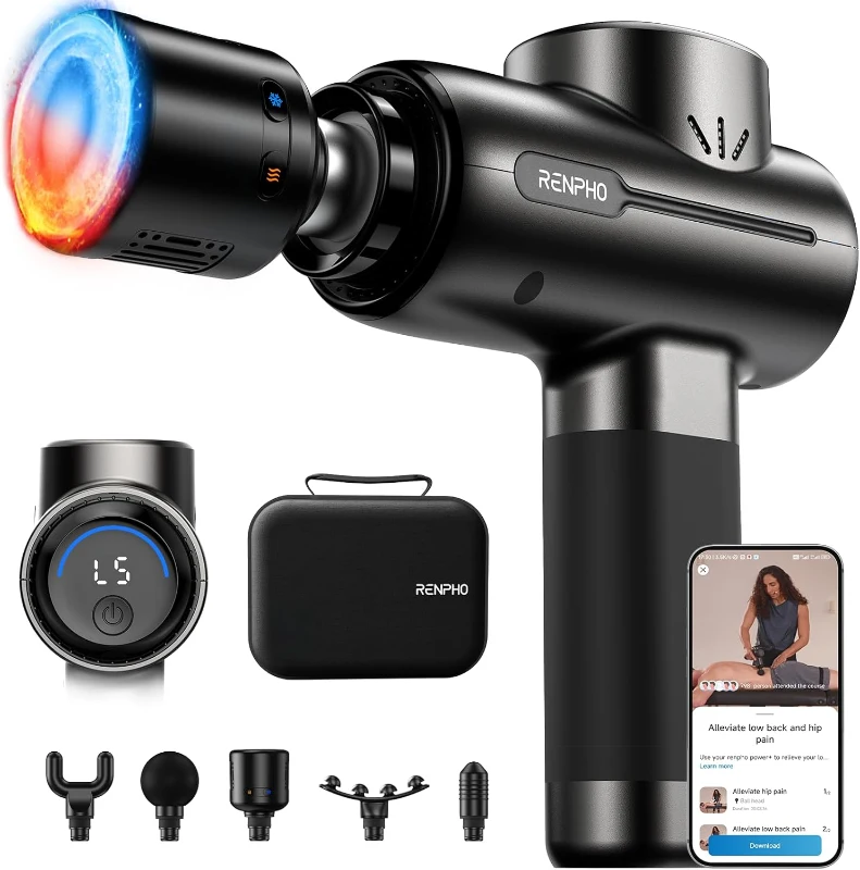 RENPHO Heat & Cold Massage Gun — Portable Percussion Deep Tissue Massager with Carrying Case, Ideal Christmas or Birthday Gift for Men & Women