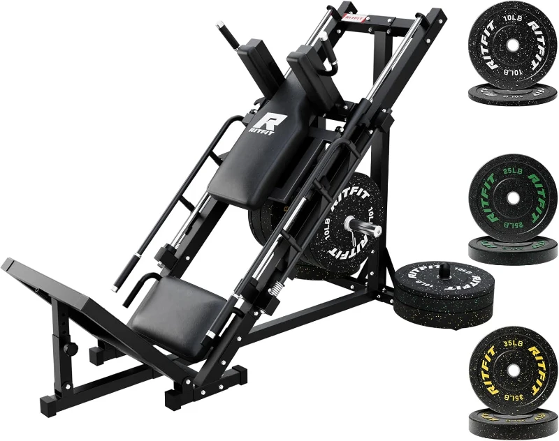 RitFit Home Gym Leg Press / Hack Squat Combo with Weight Plate Set — Adjustable Angles, Linear Bearings and Plate Storage for Complete Lower-Body Training
