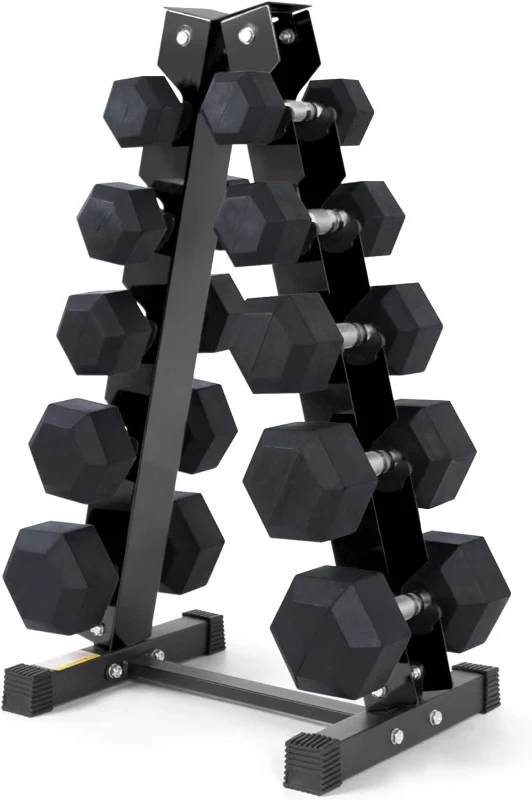 RitFit Rubber-Encased Hex Dumbbell Set (350 lb Total) with 6-Tier Rack — Coated Hand Weights for Home Gym Training
