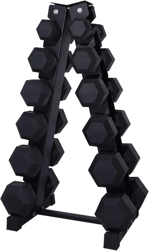 RitFit Rubber-Encased Hex Dumbbell Set with 6-Tier Rack (350 lb Total) — Coated Hand Weights for Complete Home Workouts(m-1)