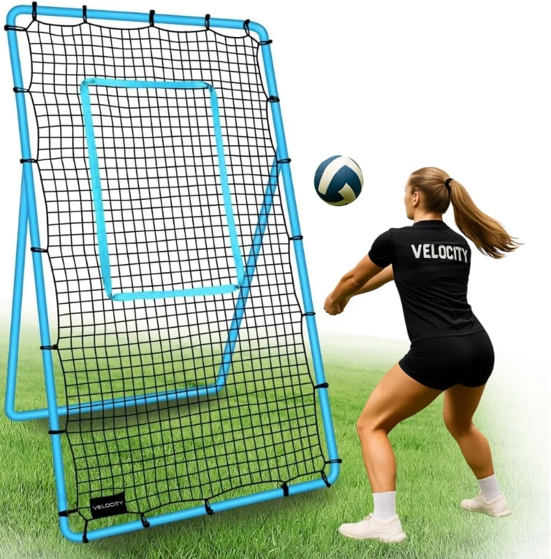 VELOCITY Adjustable Volleyball Rebounder Net 7x4 ft — Portable Training Frame with Angle Adjustment & Travel Bag