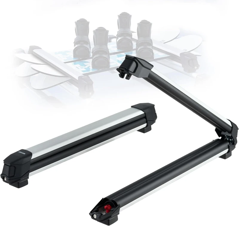 VEVOR Ski & Snowboard Roof Rack, Carries up to 6 Pairs of Skis or 4 Snowboards, 2-Pack Aluminum Universal Roof Holders with Lock & Rubber Padding, Carrier for Fishing Rods, Fits Most Slotted Crossbars