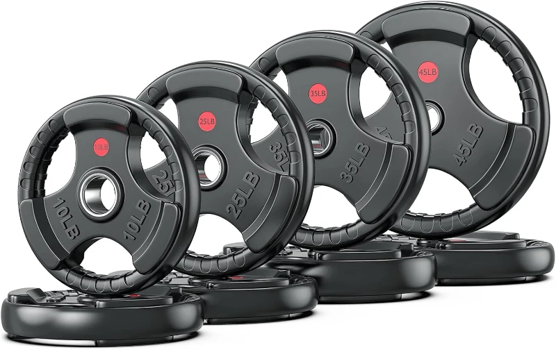 230 LB SET: Contains pairs of 10lb, 25lb, 35lb and 45lb plates (2x10 + 2x25 + 2x35 + 2x45). Orders may be delivered in multiple shipments depending on shipping limits. DURABLE BUILD: These XDDIAS plates combine a solid iron interior with a rubber coating to protect flooring and maintain consistent weight; heavy-duty steel ring insert makes bar assembly effortless. UNIVERSAL FIT: Compatible with standard 2-inch Olympic bars; available in sizes from 2.5lb up to 45lb to customize your loadout. ERGONOMIC HANDLES: Three-hole layout with textured grip grooves provides secure handling for safe loading, unloading and repositioning after sets. ACHIEVE YOUR FITNESS GOALS: Suited for strength training, bodybuilding, balance and mobility work—stock your gym with a reliable plate set. SATISFACTION ASSURED: Reach out to us if you need any support or have questions.